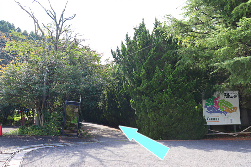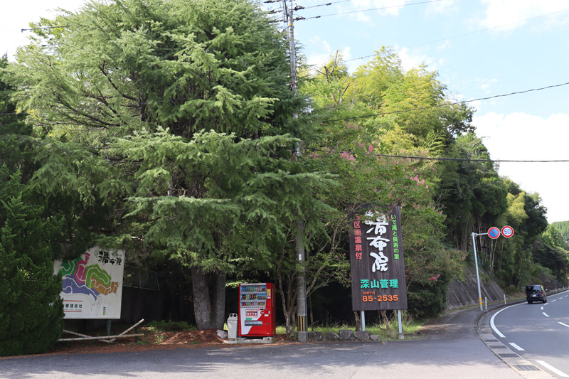 01食事処そばの右側にある「湯布院 深山管理」の看板が目印です。