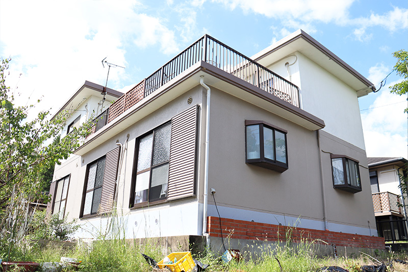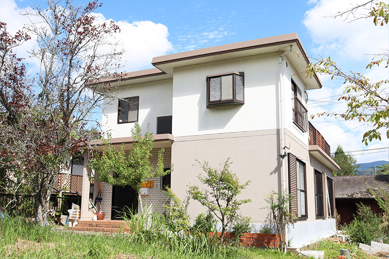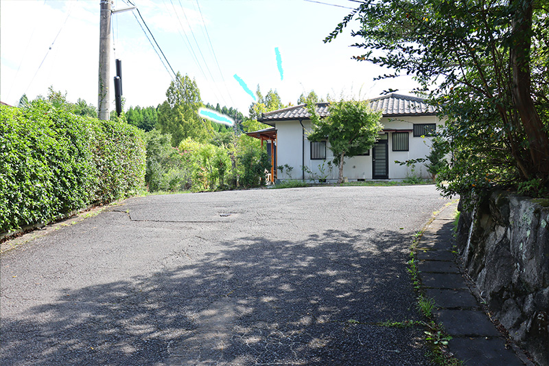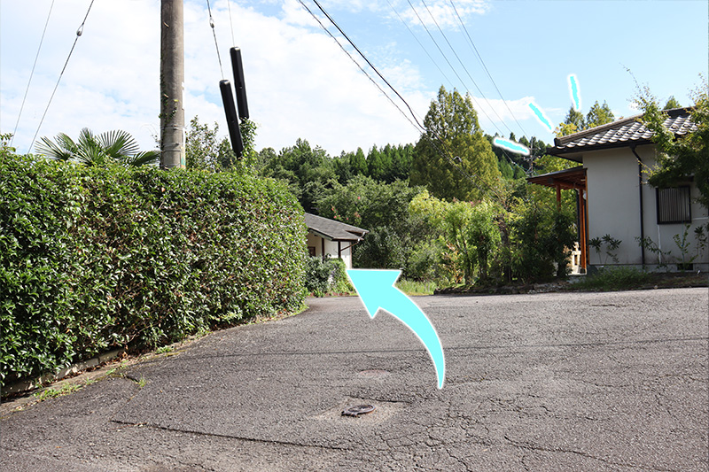 06道なりに下っていくと右手に白とベージュカラーの家が見えてきます。